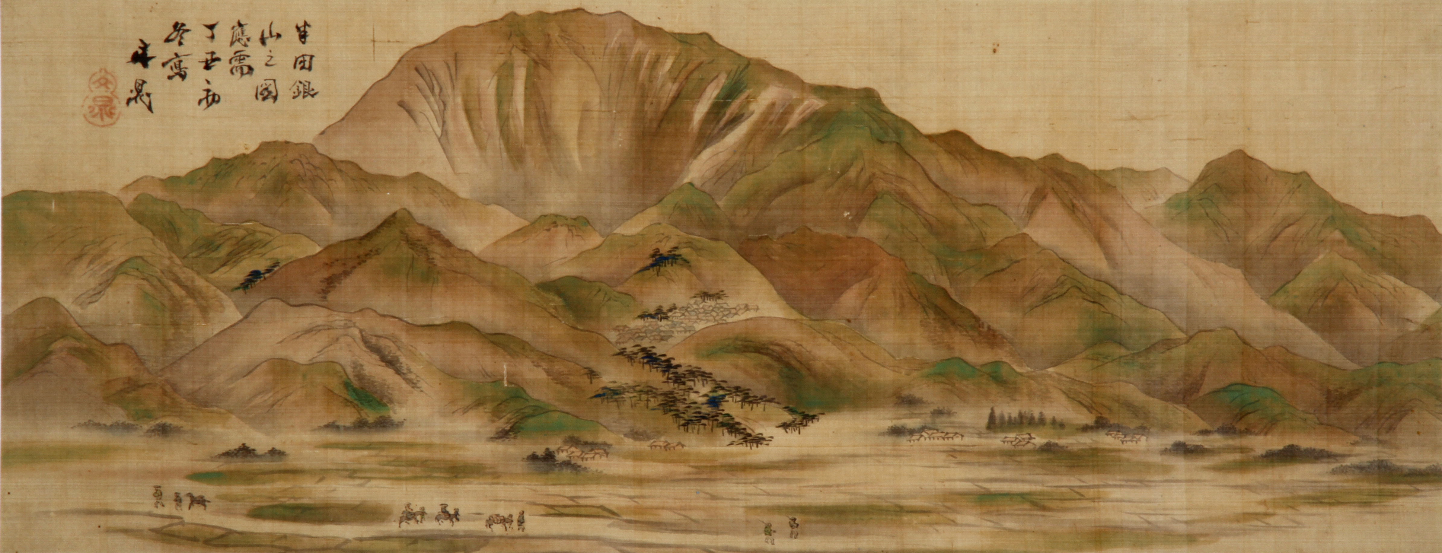 寛政8年(1796)伊達郡保原町に生まれる。松前藩士・蠣崎波響に学び、南蘋派と円山派の折衷画をつくった。のちに浦上春琴に師事し南宗派を学ぶ。山水花鳥を得意とした。69歳で歿する。 | 秋景山水[その他のファイル/2.3MB] |