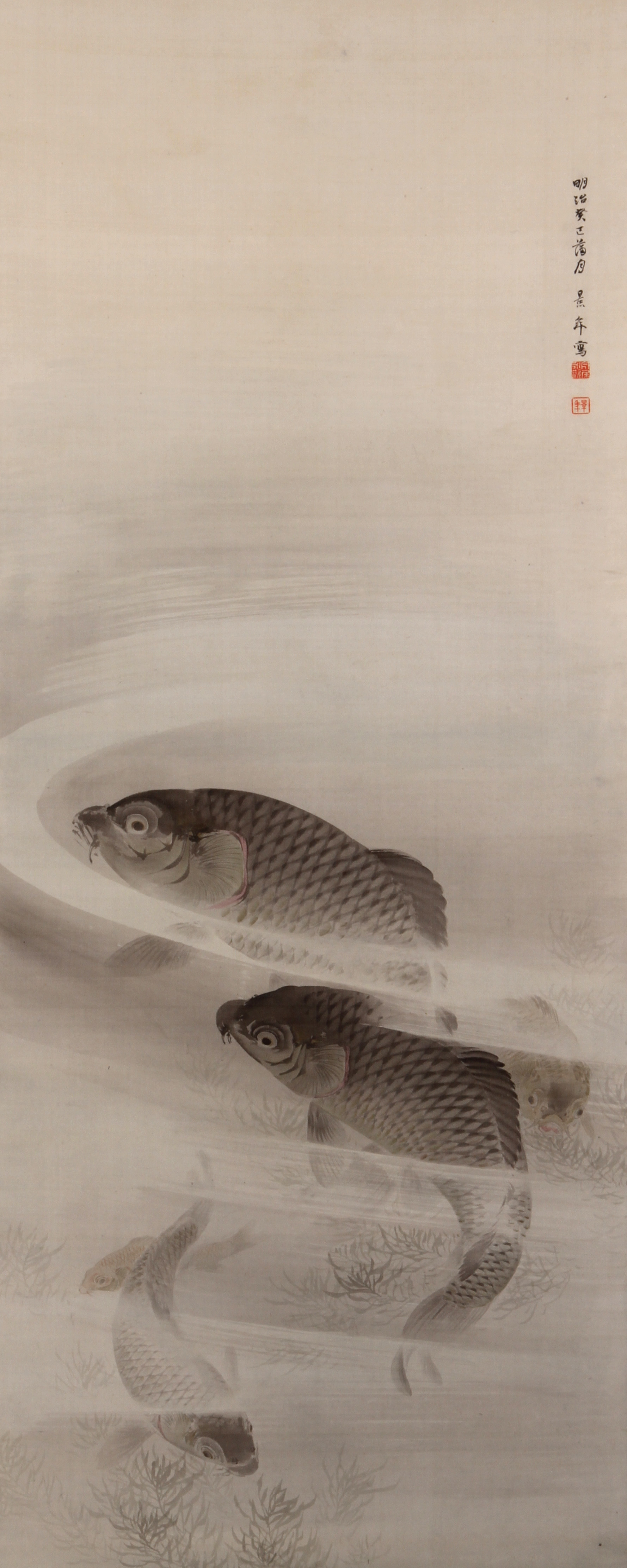 弘化2年(1845)京都に生まれ、鈴木百年に四条派を学ぶ。絵画共進会や美術縦覧会等に出品して好評を博し、明治39年、帝室技芸員を拝命し、文展の審査員を勤めた。80歳で没する。 | 遊鯉之図[その他のファイル/1.1MB] |