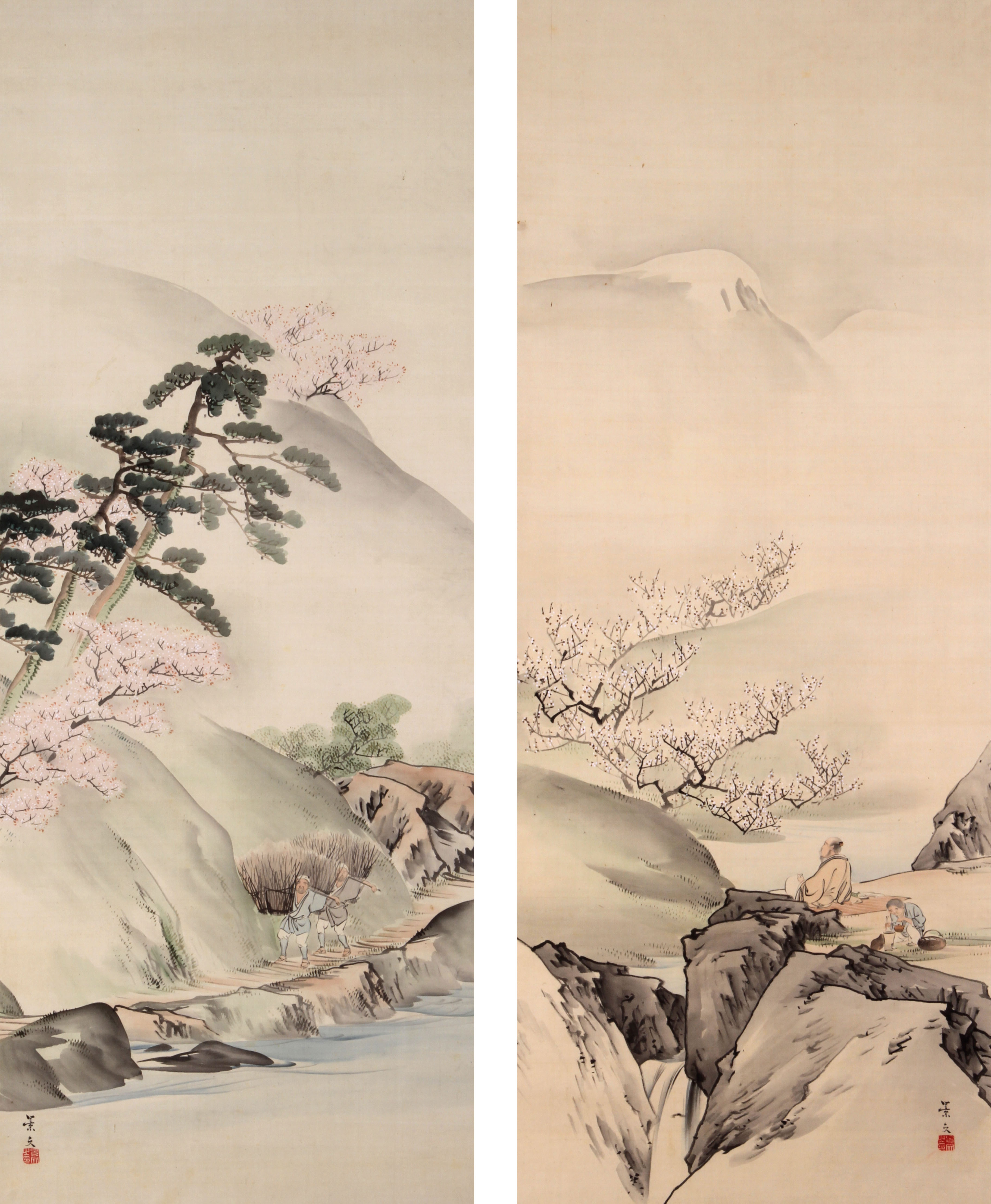 安永8年(1779)生まれ。兄・松村呉春より絵の指導を受け、また円山応挙の写生風を学び一家を成す。四条派の発展に大きく貢献した。妙法院の近侍となり、京都妙法院の襖絵などが有名。65歳で没した。 | 高士観梅花山帰樵[その他のファイル/1.4MB] |