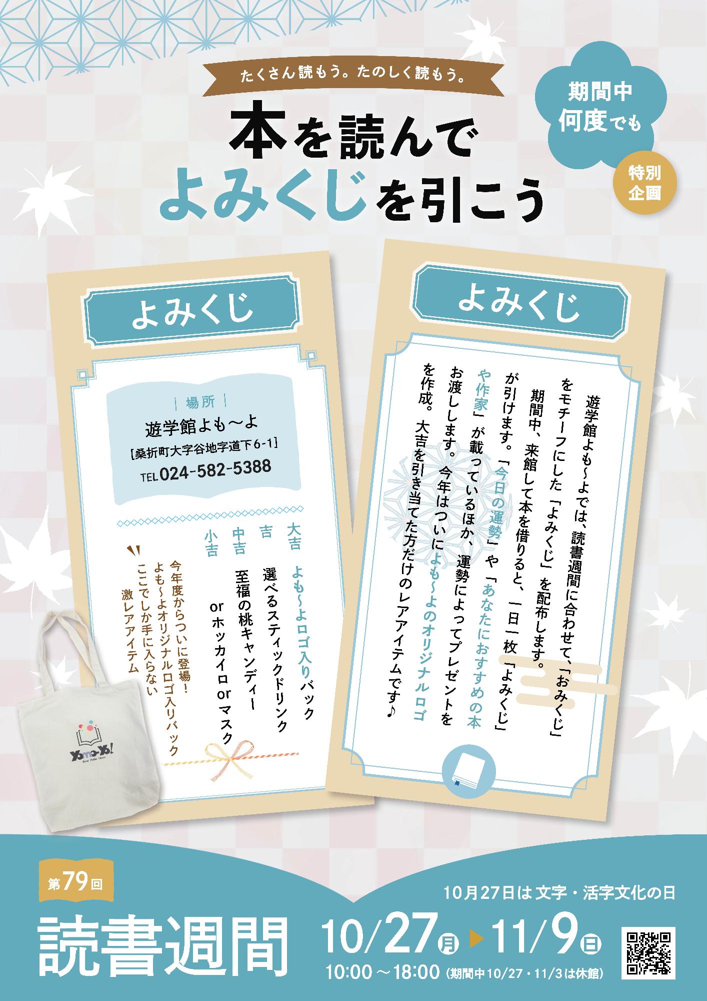秋の読書週間に合わせて、10月27日から11月9日にかけて、おみくじをモチーフにしたイベント「本を読んで、よみくじを引こう!」を実施しています。