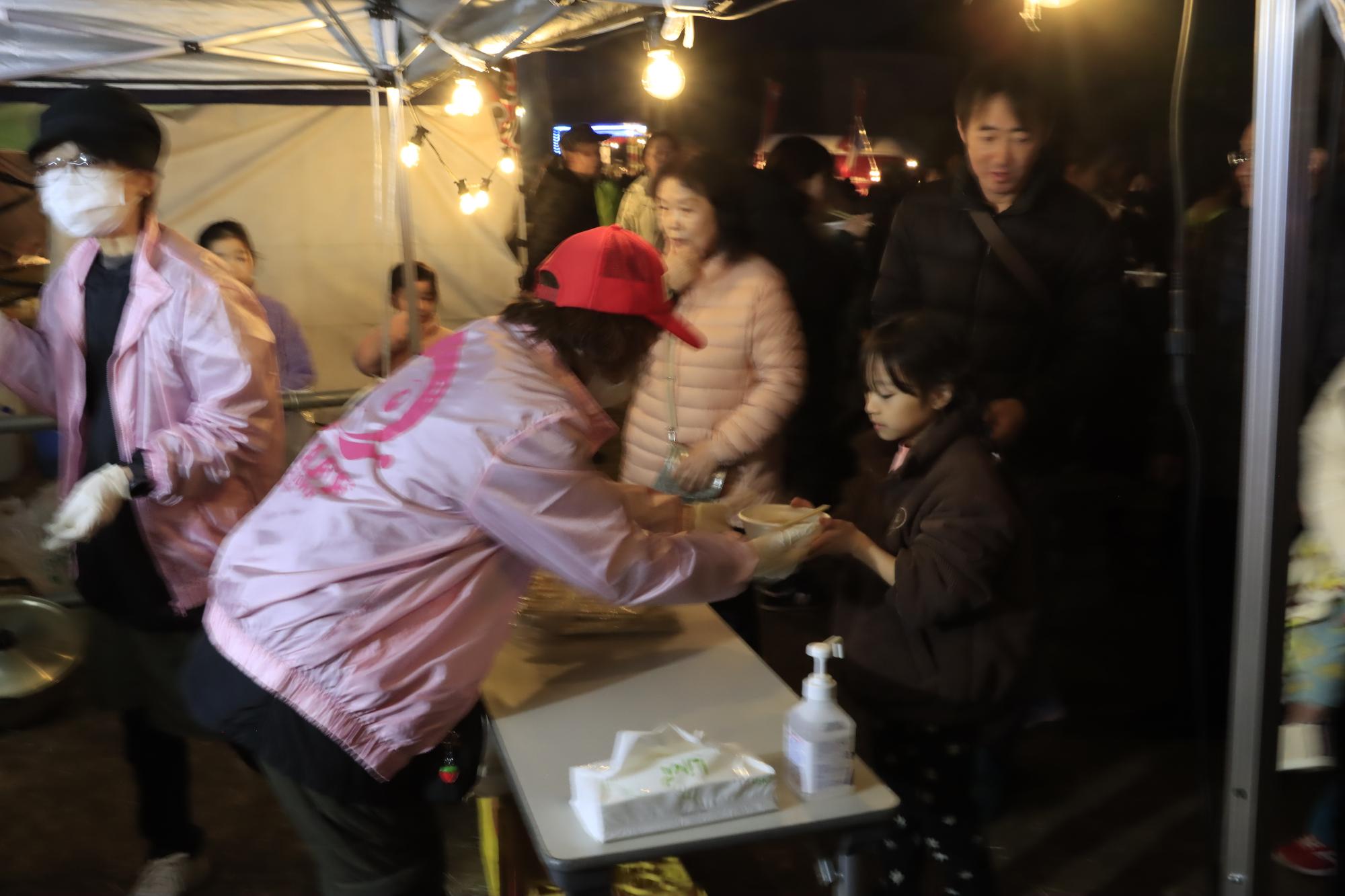 夜市会場内で振舞われた豚汁には長蛇の列が